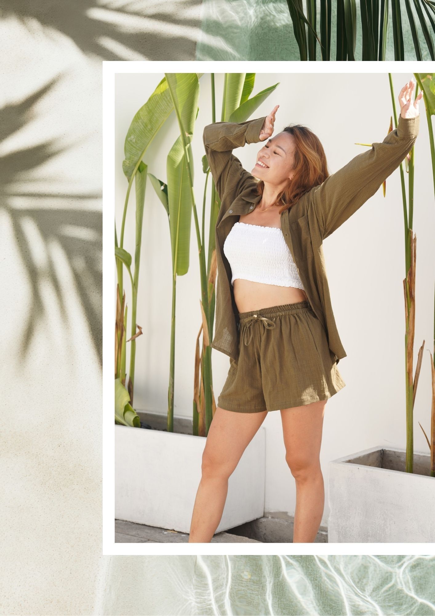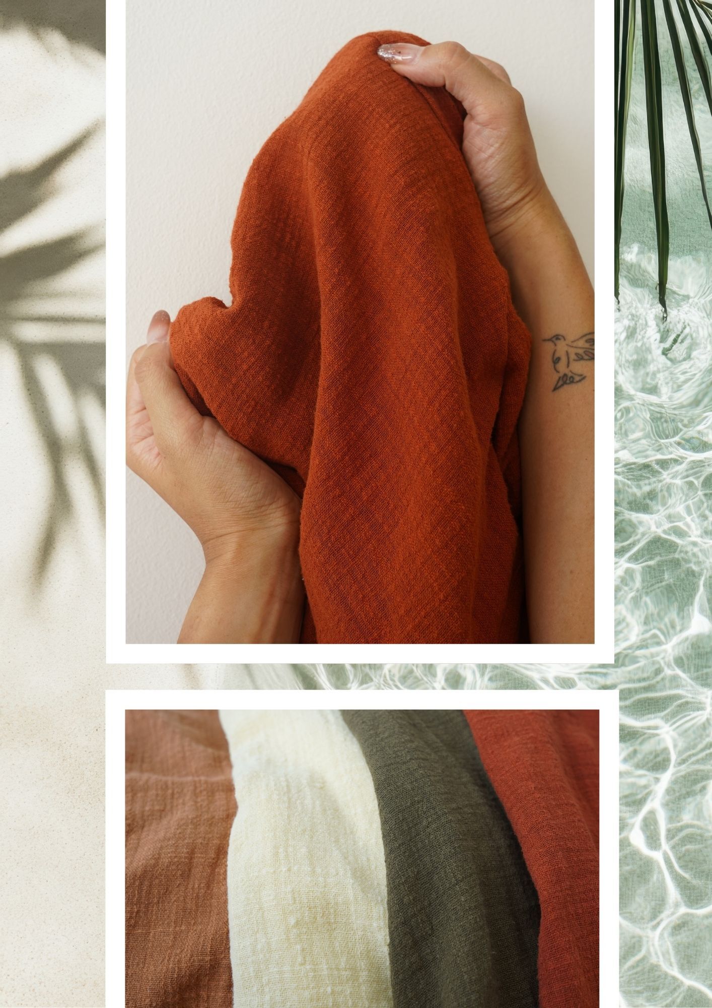 布料帶有自然粗細不均的紋理,天然纖維製作的衣服,讓你每一寸皮膚都可以好好呼吸