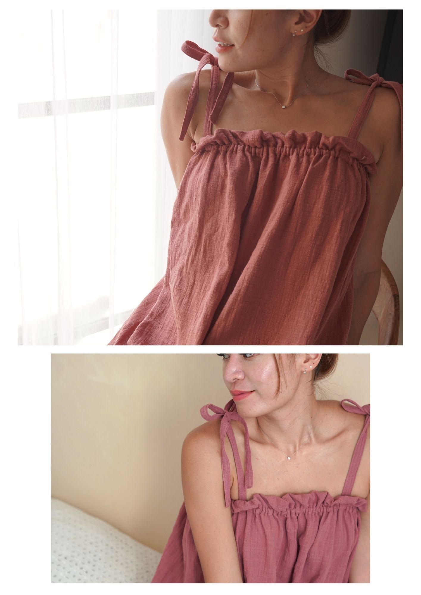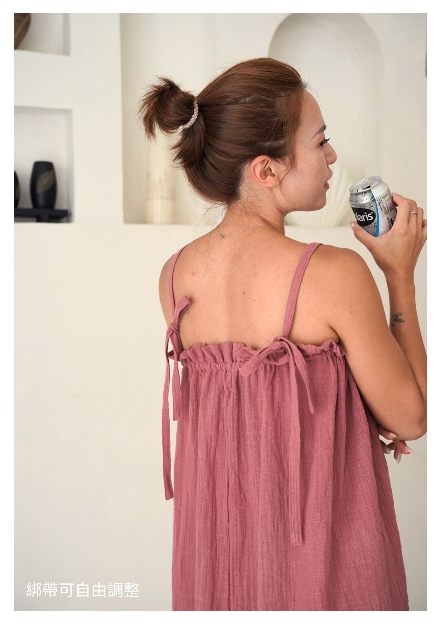 肩帶可自行綁蝴蝶結,長度不限