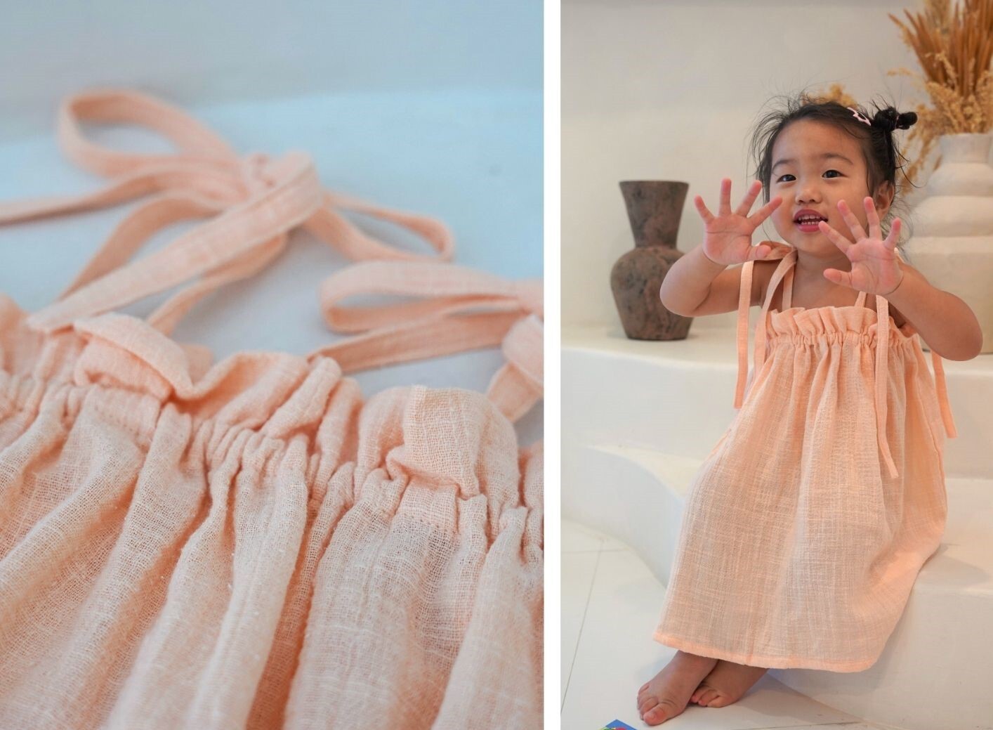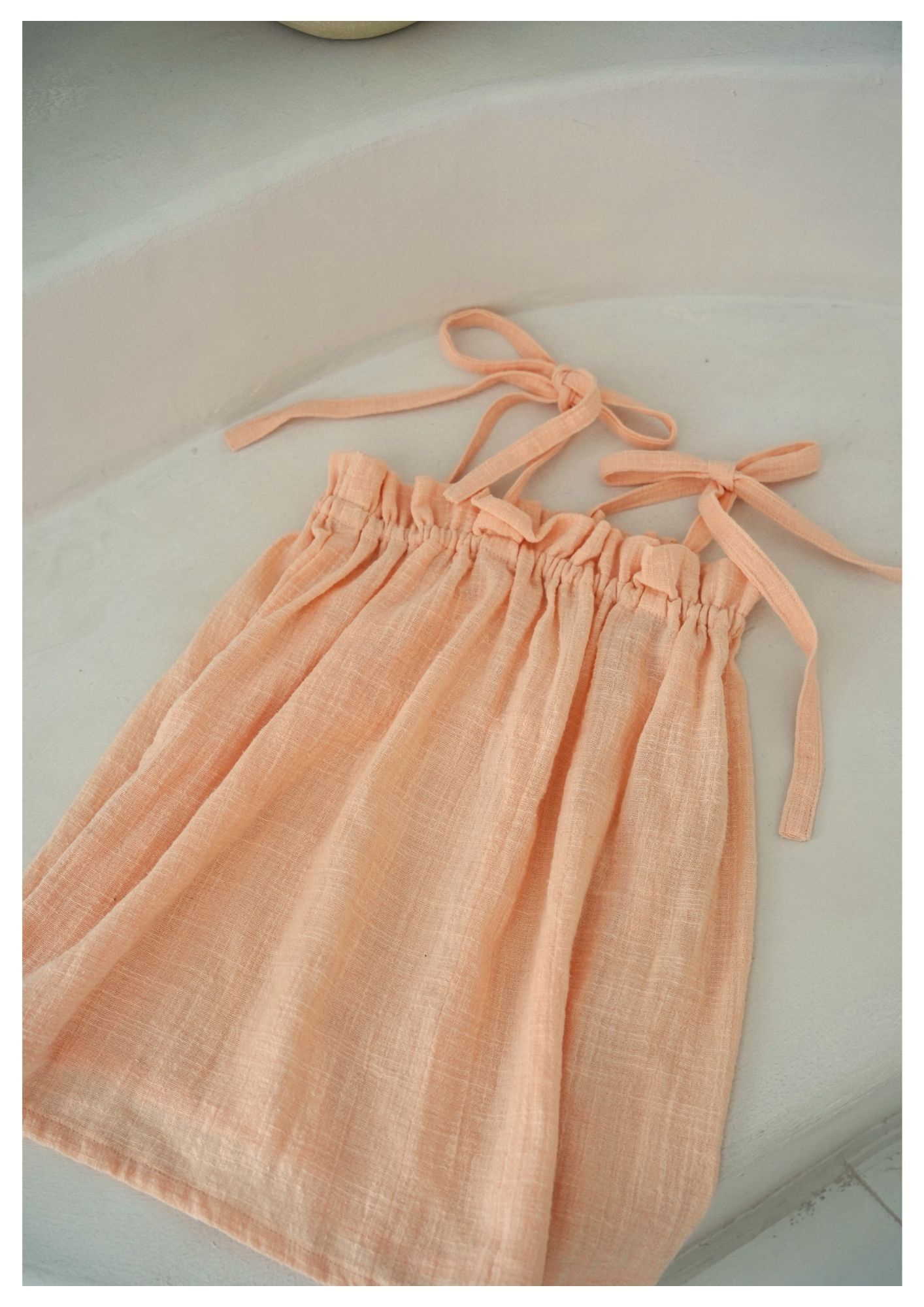 肩帶可自行綁蝴蝶結調整長度