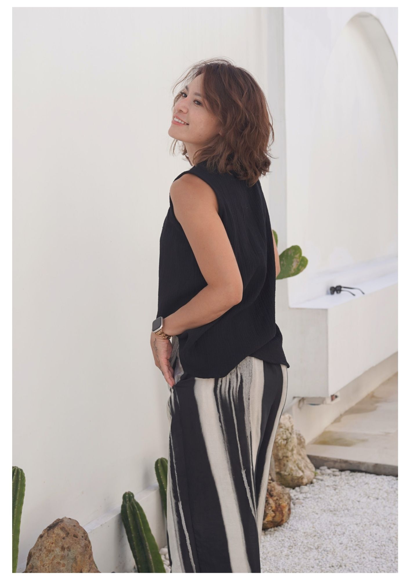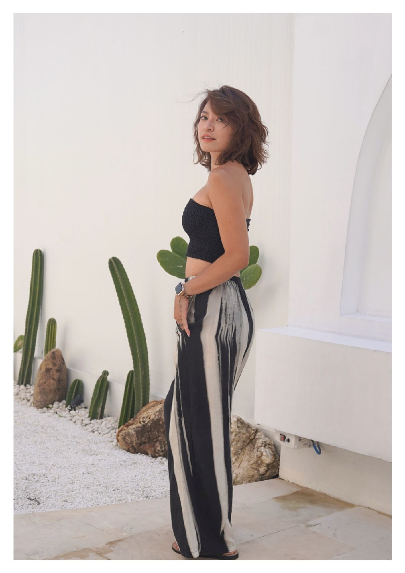 直條紋有層次細節堆疊,更修飾腿長